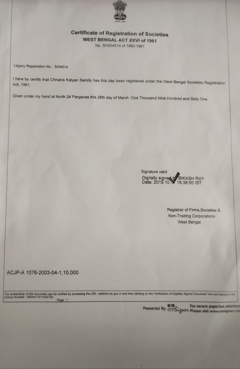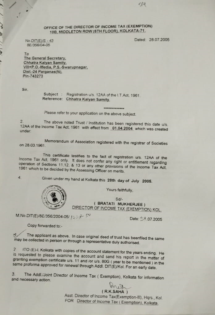 Document Gallery CHHATRA KALYAN SAMITY Registration Certificate PAN Card 12A Certificate 80G Certificate